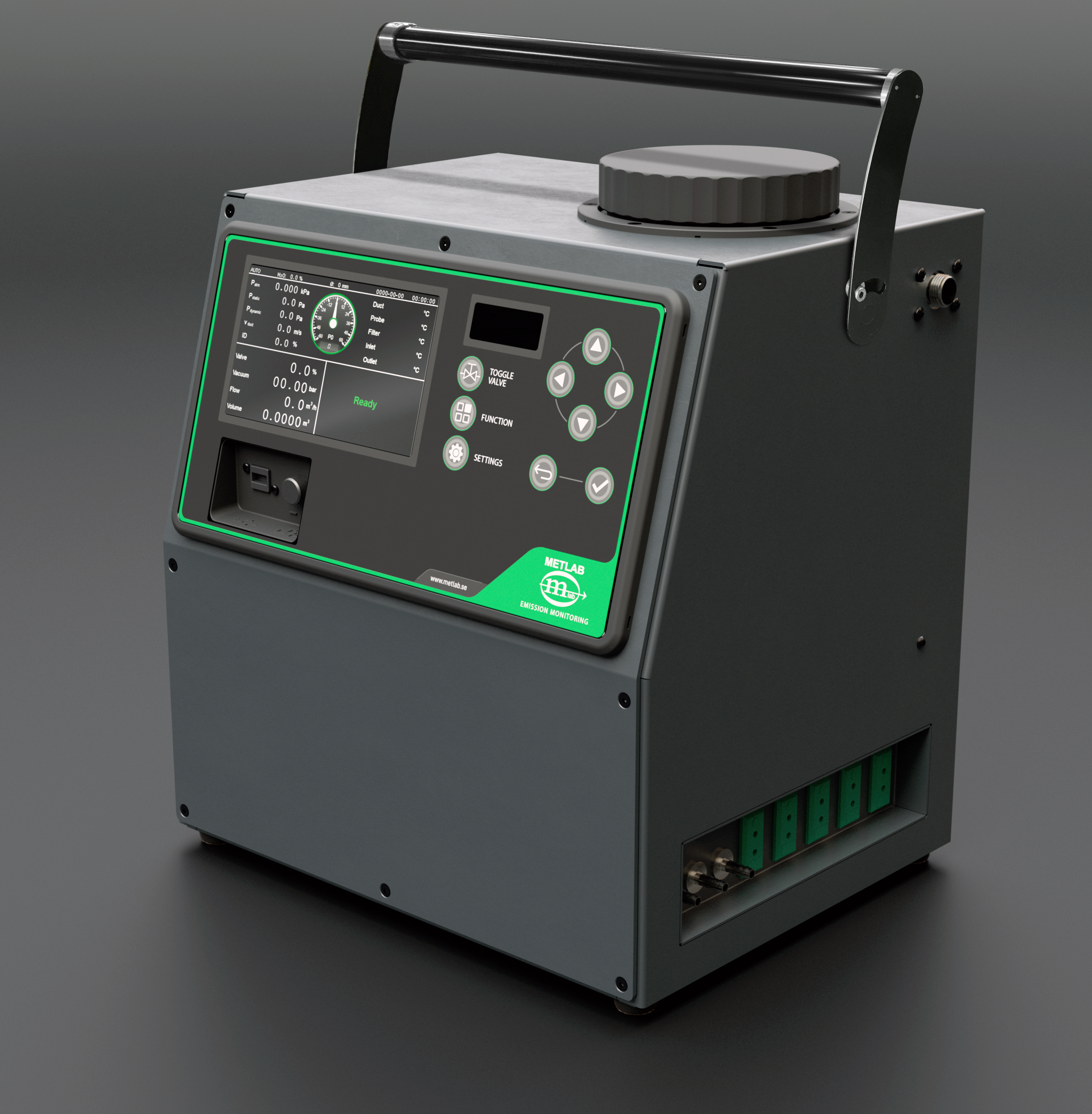 Tillsammans med METLABs sondsystem ESS-P mäts flödeshastigheten kontinuerligt i provtagningspunkten i enlighet med EN 13284-1.